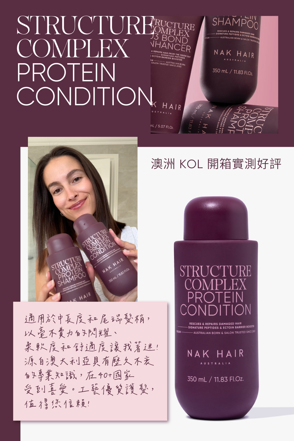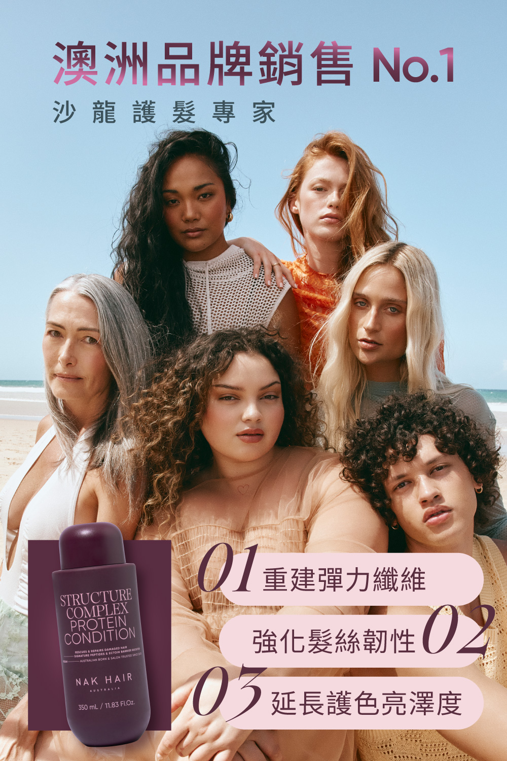 修護受損髮質,補充蛋白與水分,提升頭髮韌性與光澤。
