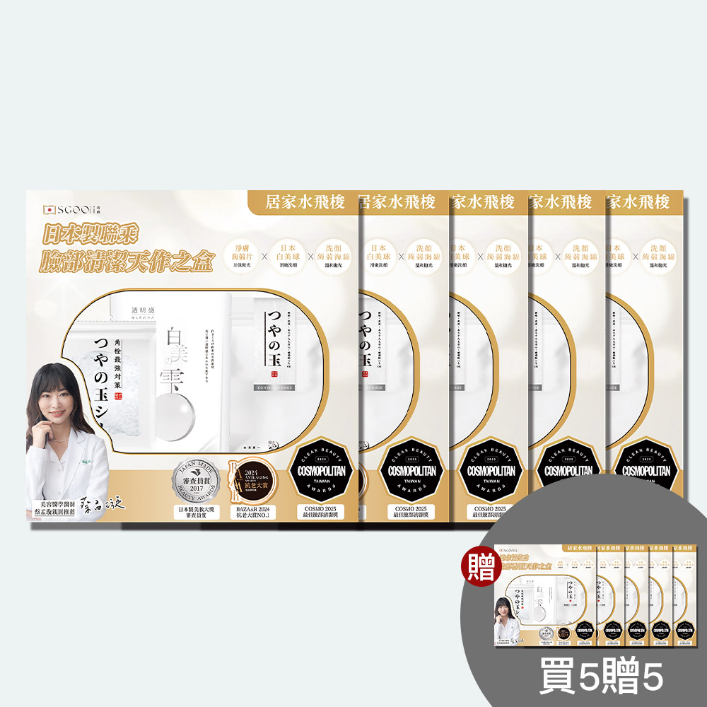 日本製聯乘 臉部清潔天作之盒 (白美球+蒟蒻海綿+蒟蒻片)#買五送五